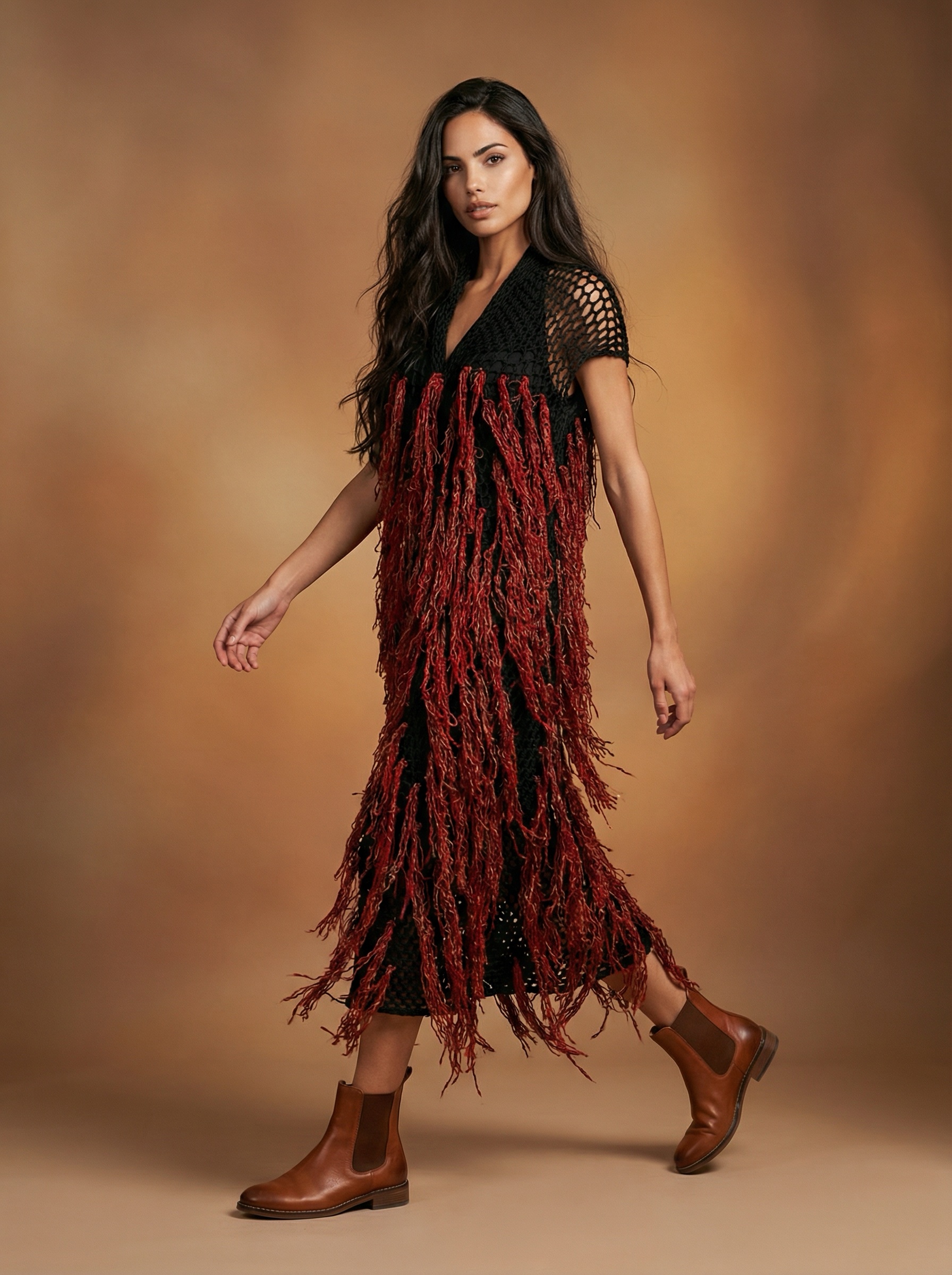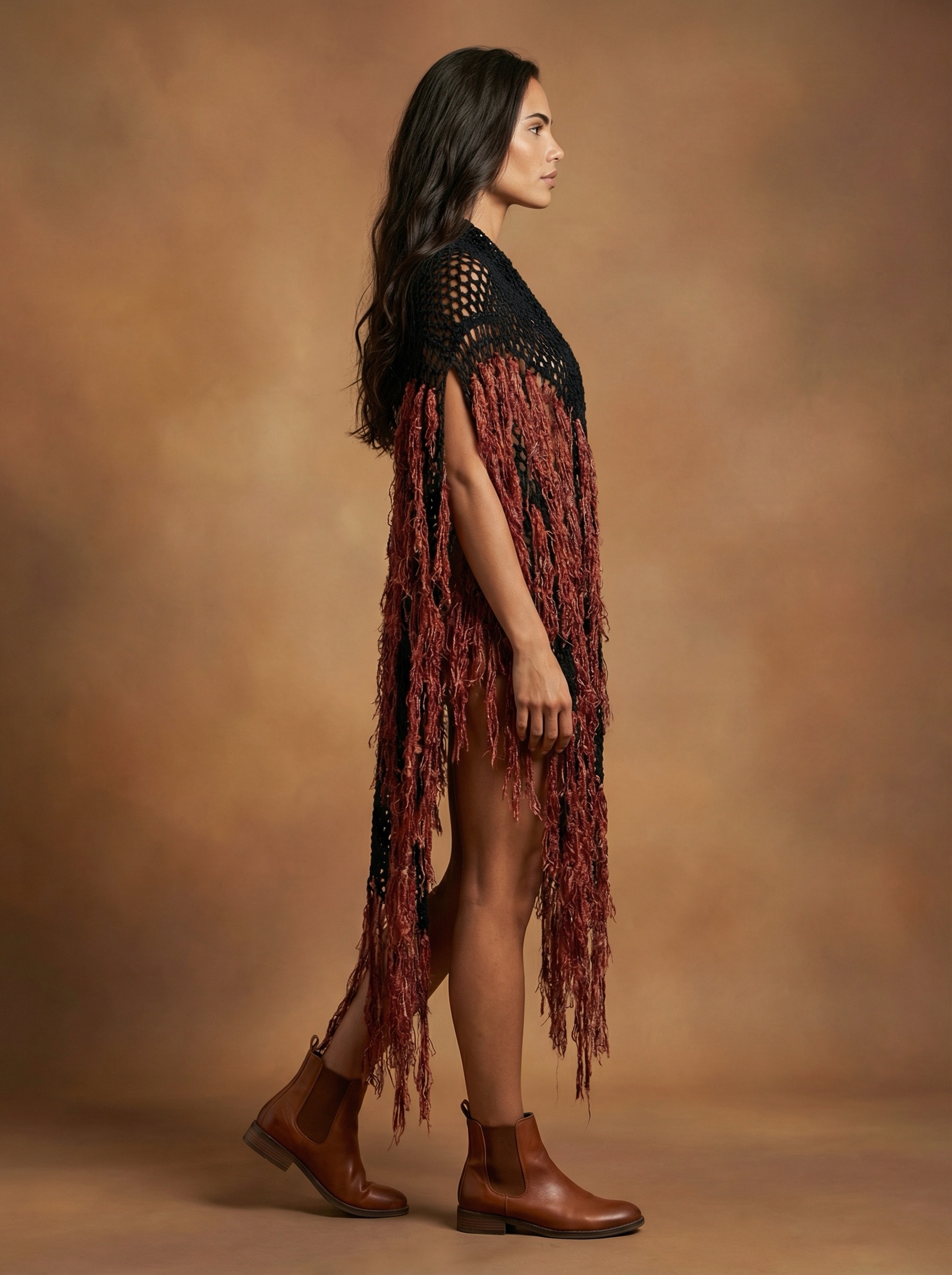 Crochet poncho ornate with red and orange threads 100% cotton