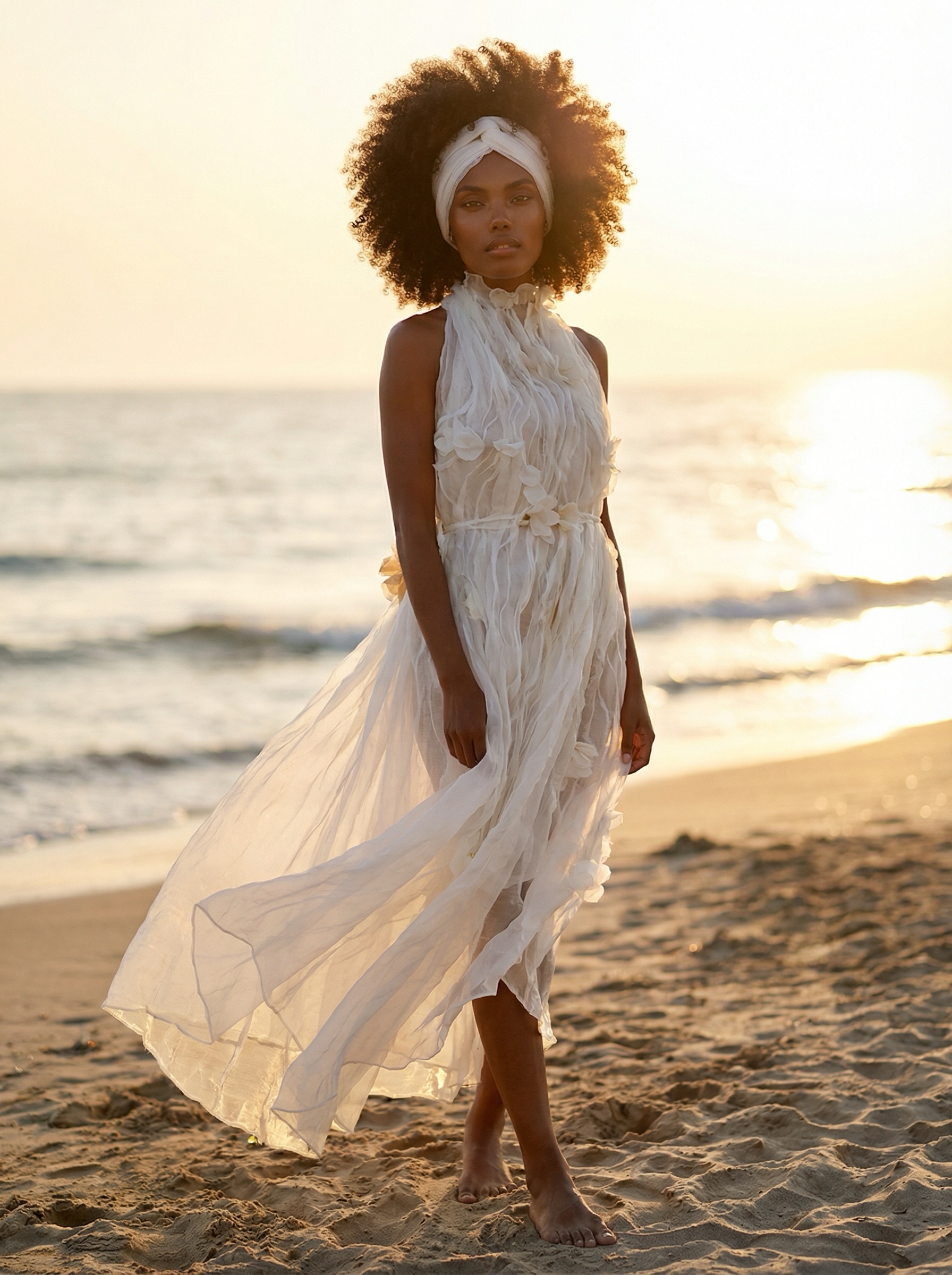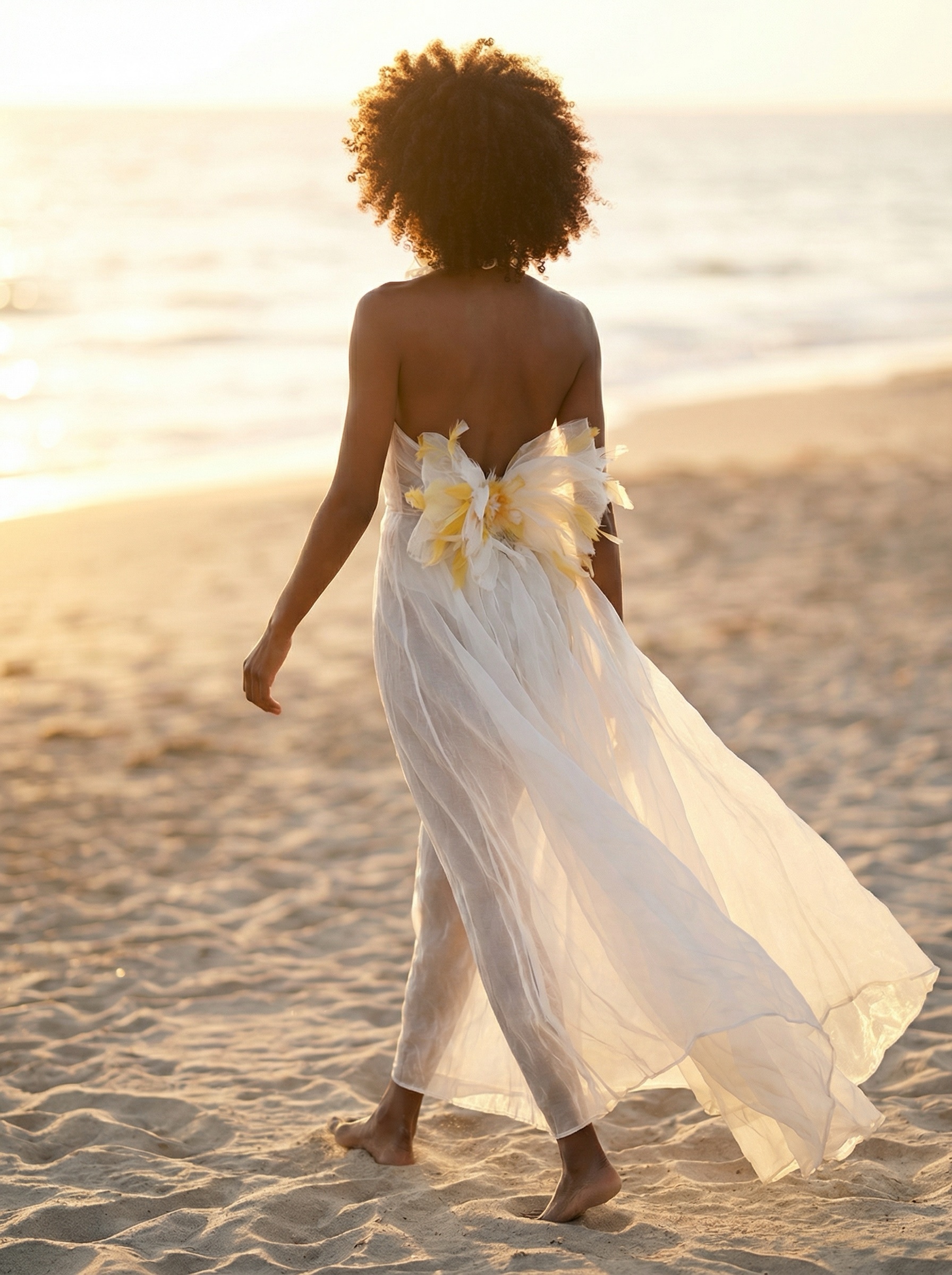 Organza cream wedding dress Cole with a beck bow/ a scarf and a veil