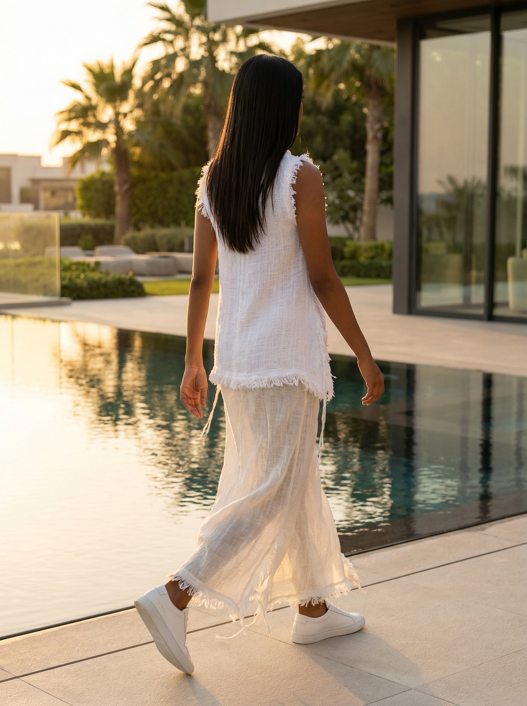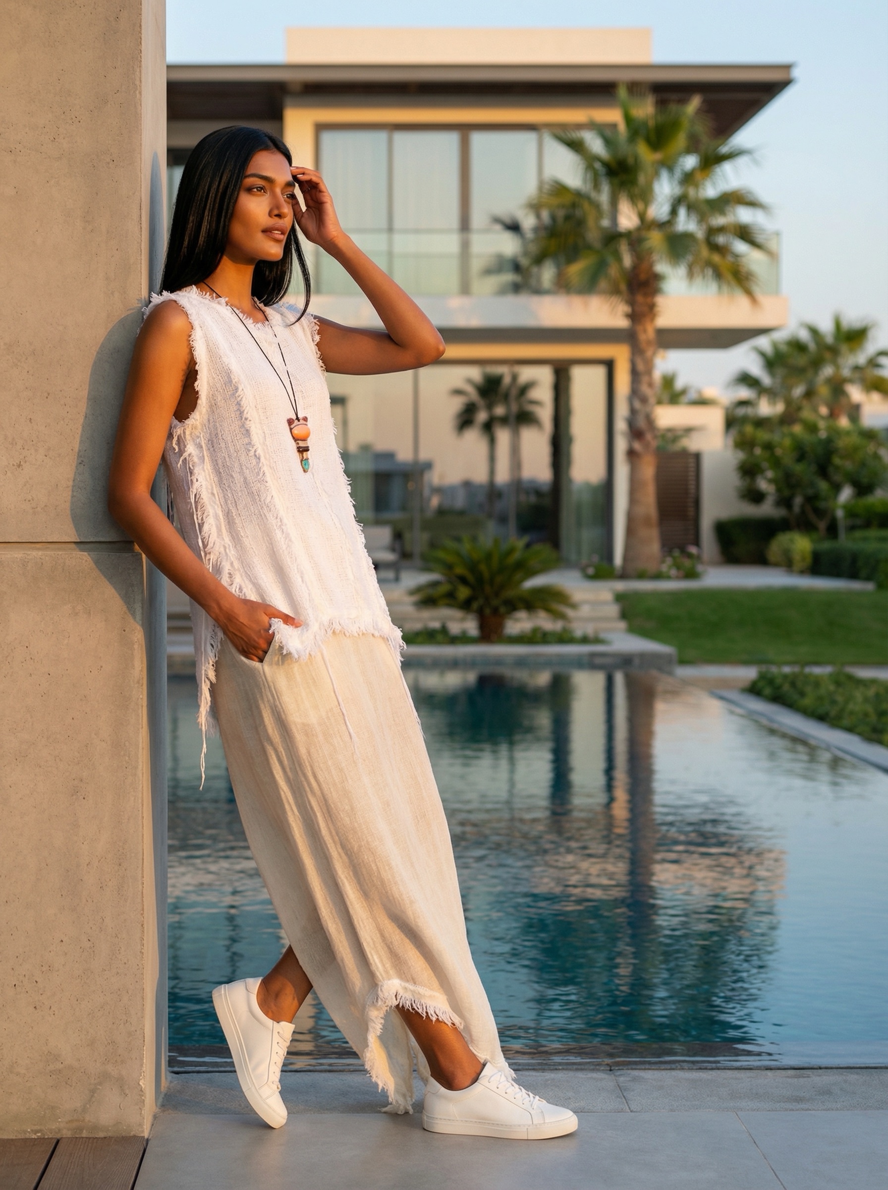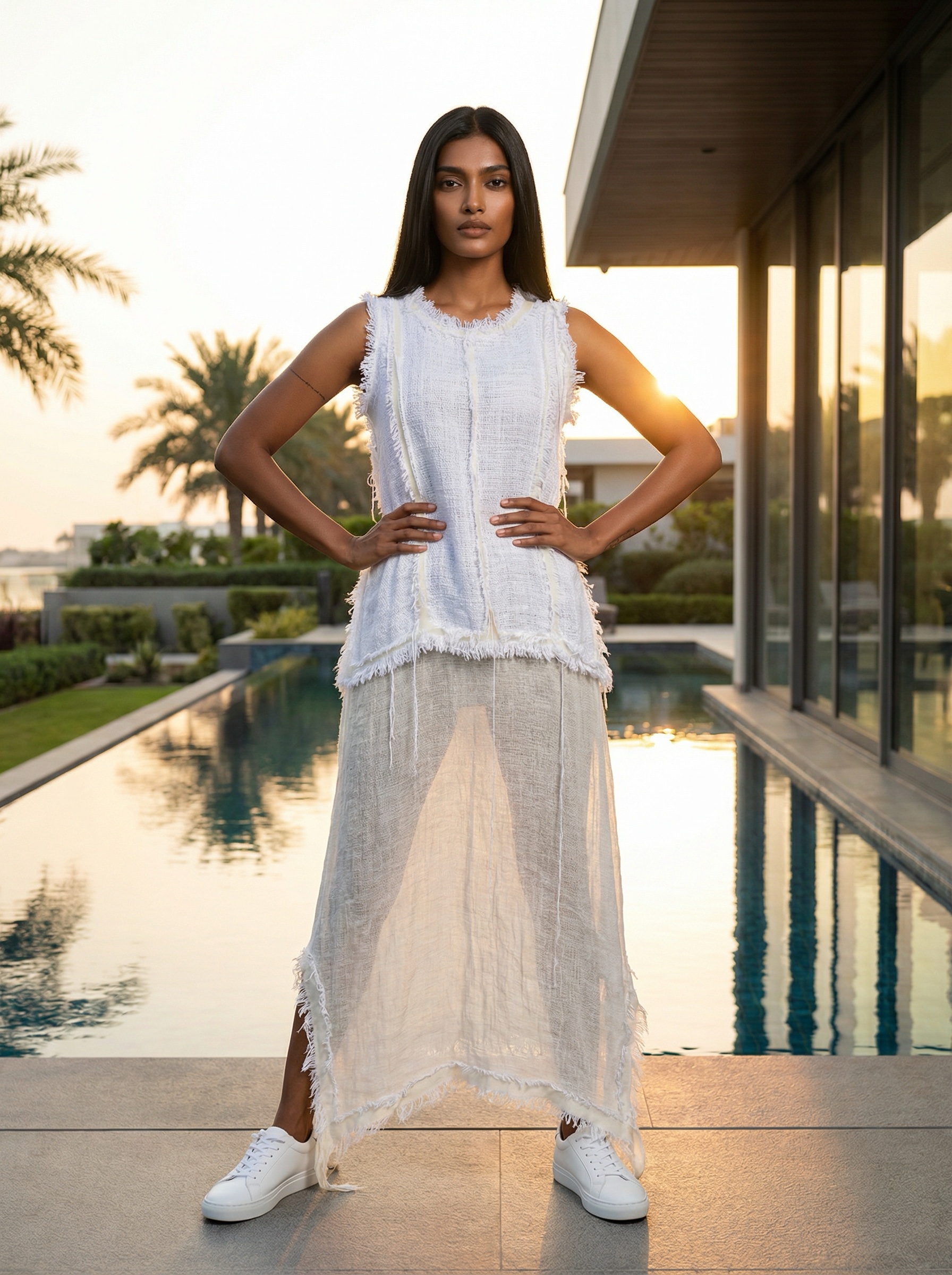 This dress is composed of two linens thick on the top and sheer skirt! Felting white wool borders to give it a lush finish