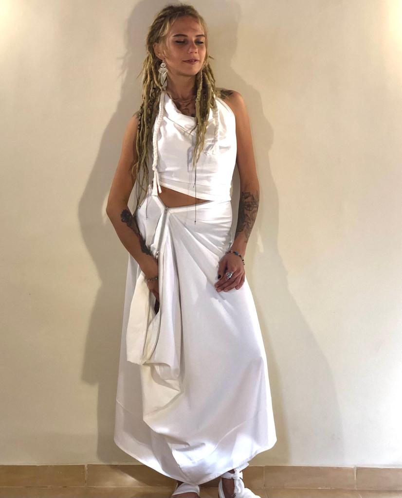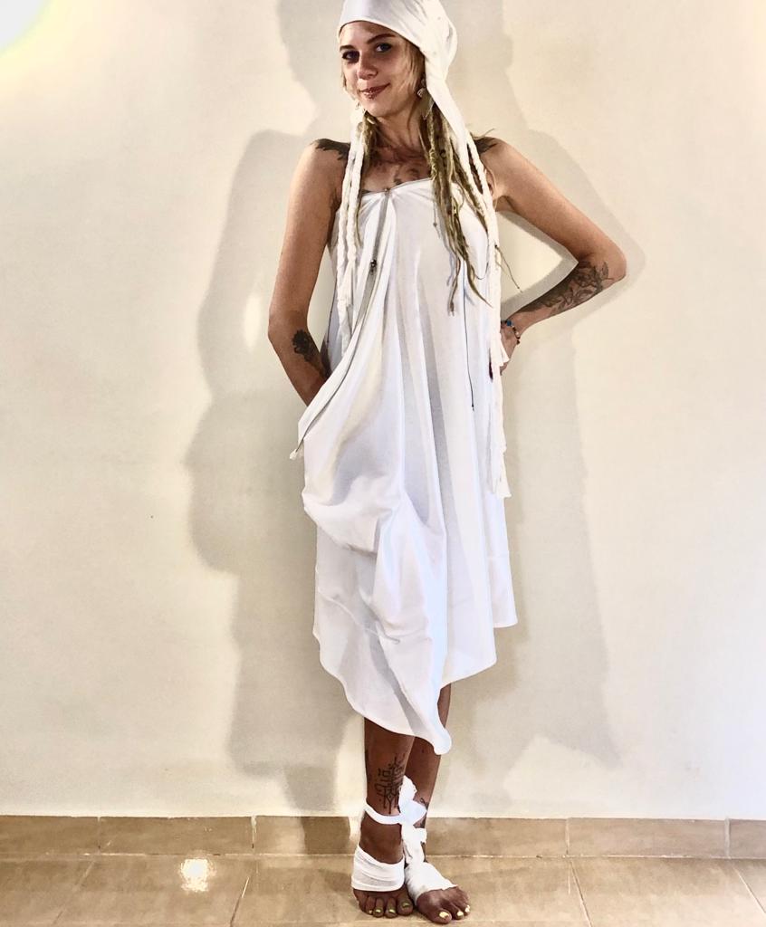 The zip up scarf is a square made with 100% egyptian lycra cotton connected with a zipper with two openings! this scarf allows you to wear it as a dress/ skirt/pants or top!